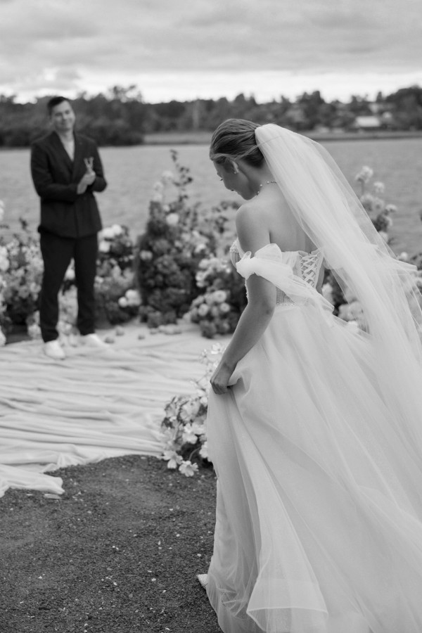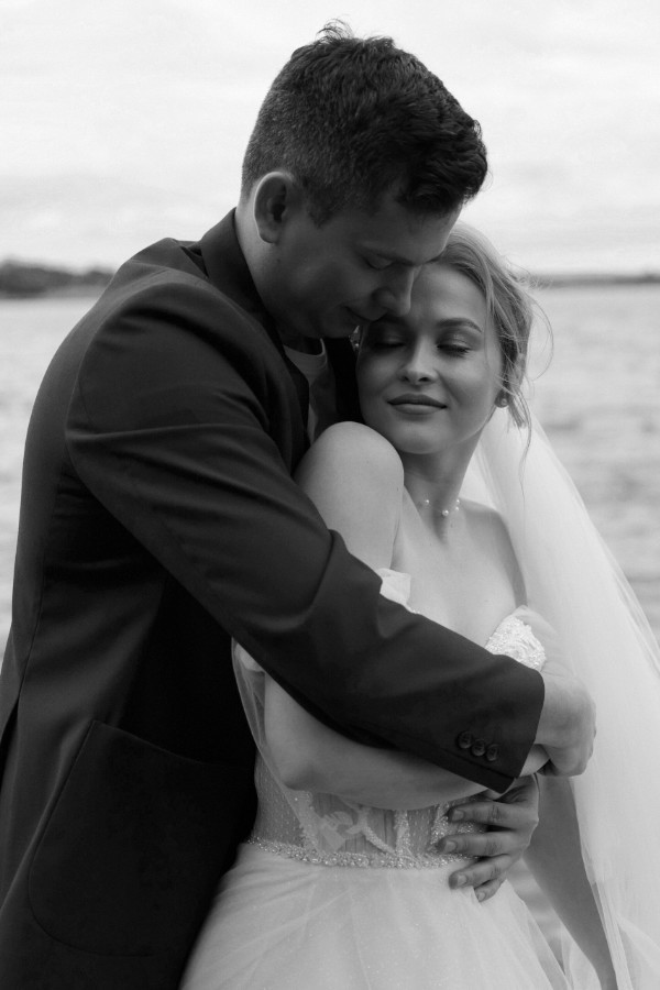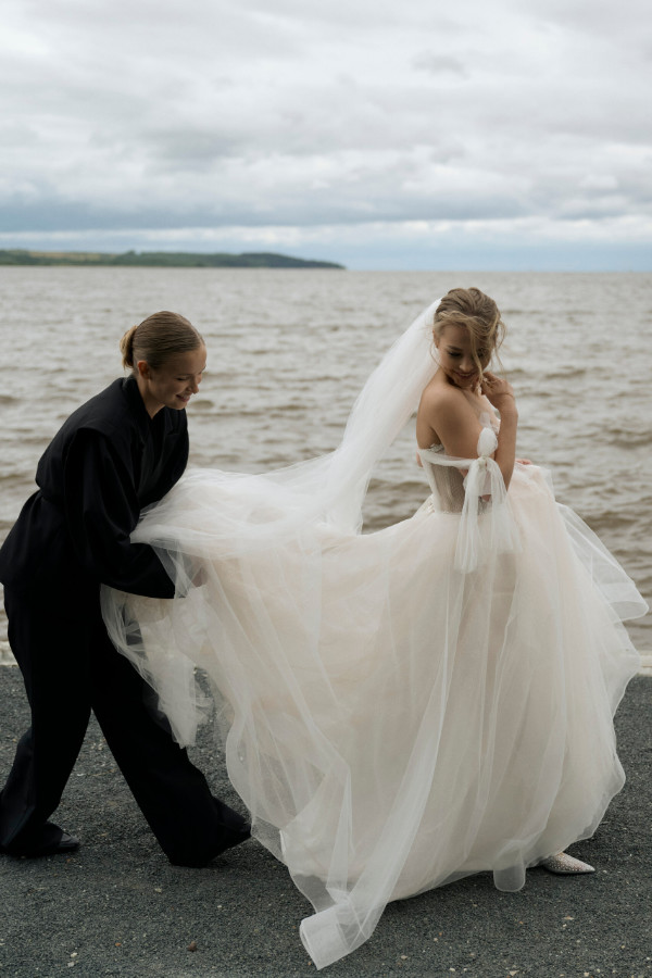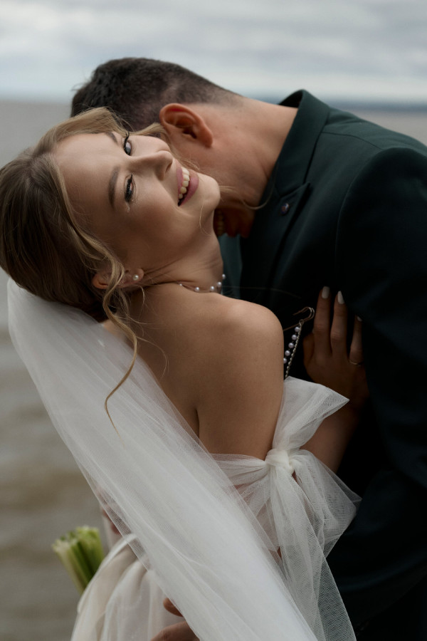 Церемония прошла на берегу — спокойно, трогательно и очень по-настоящему. Вокруг только лёгкий шум воды и ветер, играющий фатой невесты.