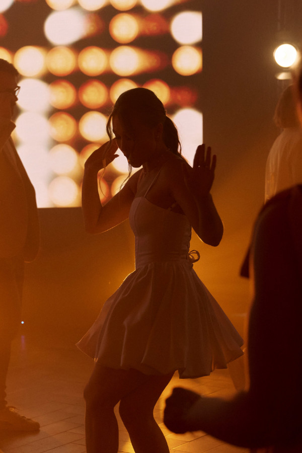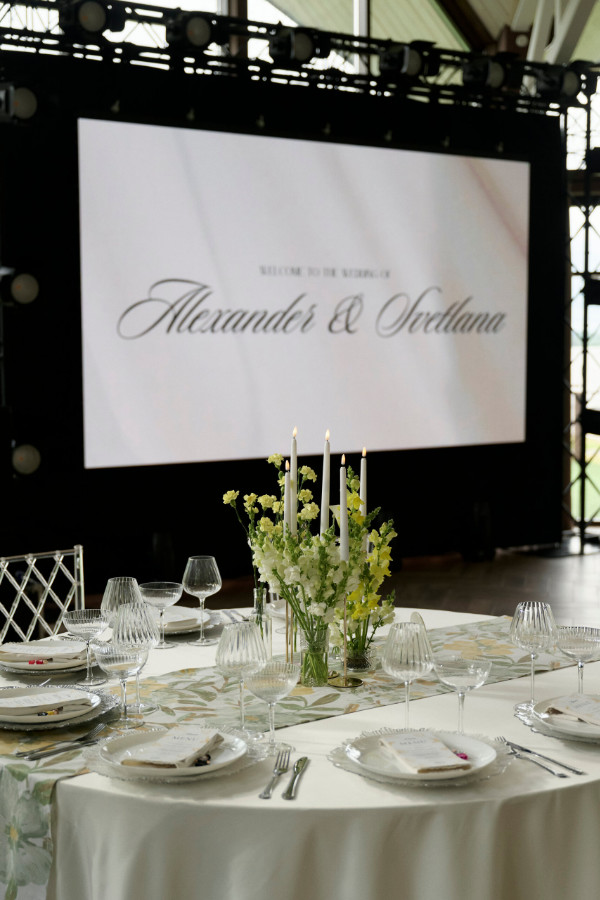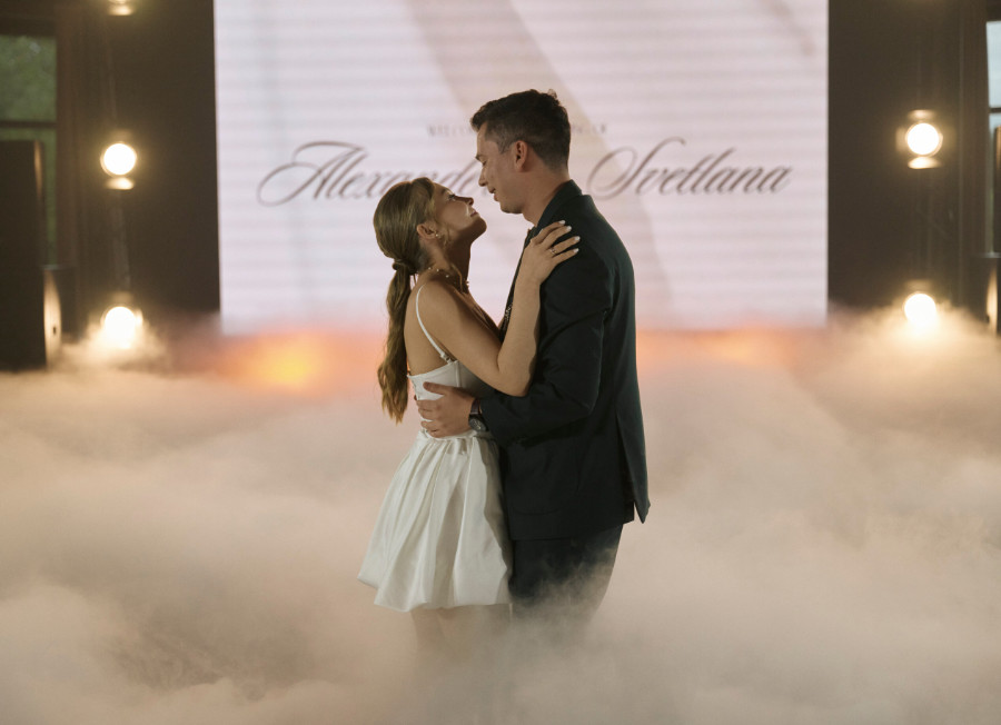 Во время первого танца, на фоне мягкого дыма и мерцающего экрана, Саша и Света подарили всем невероятно красивый момент — танец под особенную для них песню.