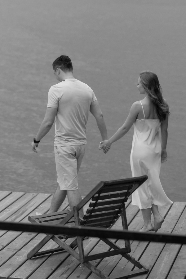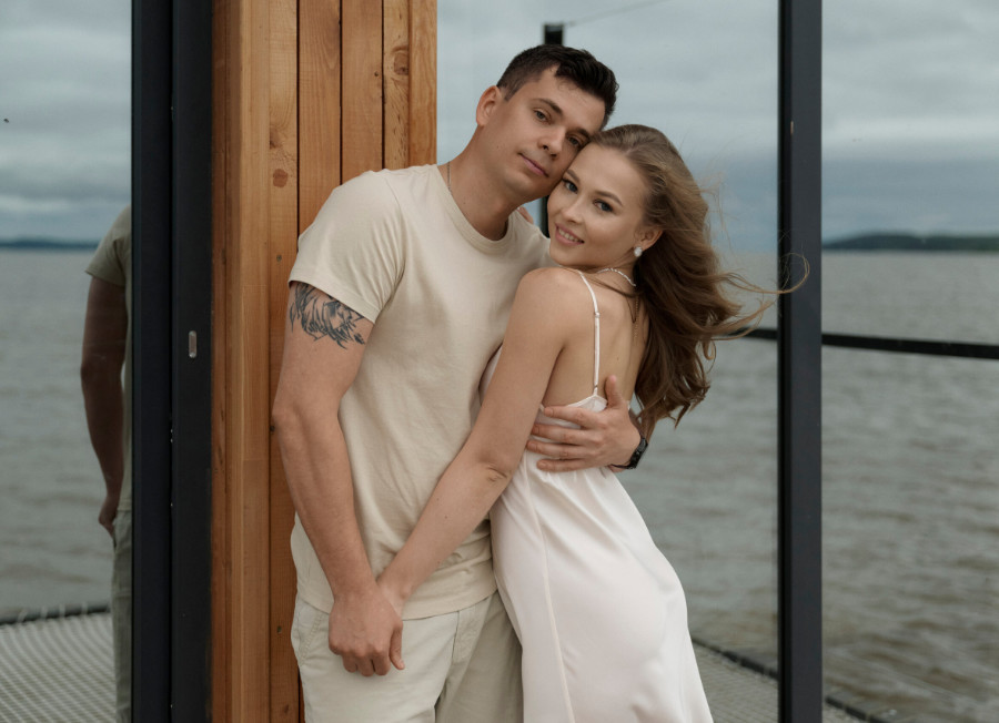 Предсвадебная съёмка прошла в спокойной и уютной атмосфере у воды. Мы выбрали место, где можно почувствовать тишину, пространство и немного уединения.